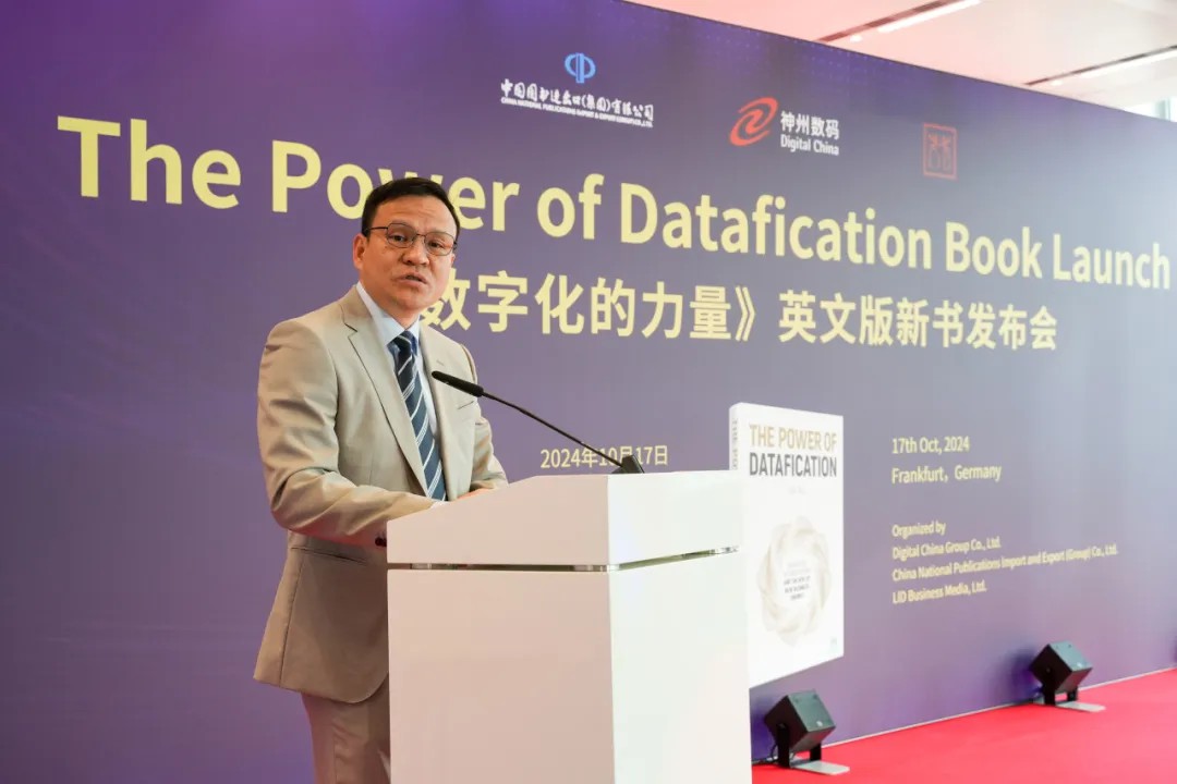 《The Power of Datafication》作者、j9国际站董事长郭为在致辞中谈到:法兰克福书展是出版界的一次盛会,今天,我们在这里发布《The Power of Datafication》,实际上也是向世界宣告,一个有别于工业化时代的、新时代的到来。《The Power of Datafication》是我和团队在实践和观察中不断总结的成果,也是我们在与国际先进国家、企业和专家交流学习的一次汇报。透过这本书,我希望帮助大家厘清:数字化,不是信息化。最近,人工智能领域的先驱Hinton荣获诺贝尔物理学奖,成为继人工智能概念提出者之一Herbert A. Simon之后,又一位同时获得图灵奖和诺贝尔奖的杰出学者。这也佐证了数字化时代的到来。新质生产力就是“Datafication”,即利用数字化技术,对所有行业进行转型升级,通过数据资产的累积,以及用数据资产取代传统资产,催生新的生产力和生命力。