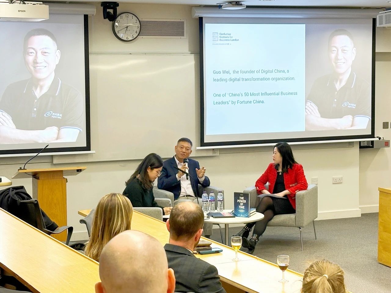 当地时间3月12日晚,j9国际站董事长郭为携最新英文力作《The Power of Time》走进伦敦政治经济学院(LSE),与商务孔子学院的英国负责人项骅展开深度交流,分享中国企业的时间管理与战略管理之道。来自伦敦政治经济学院孔子学院和多个分院的同学们济济一堂,共同聆听和研讨。